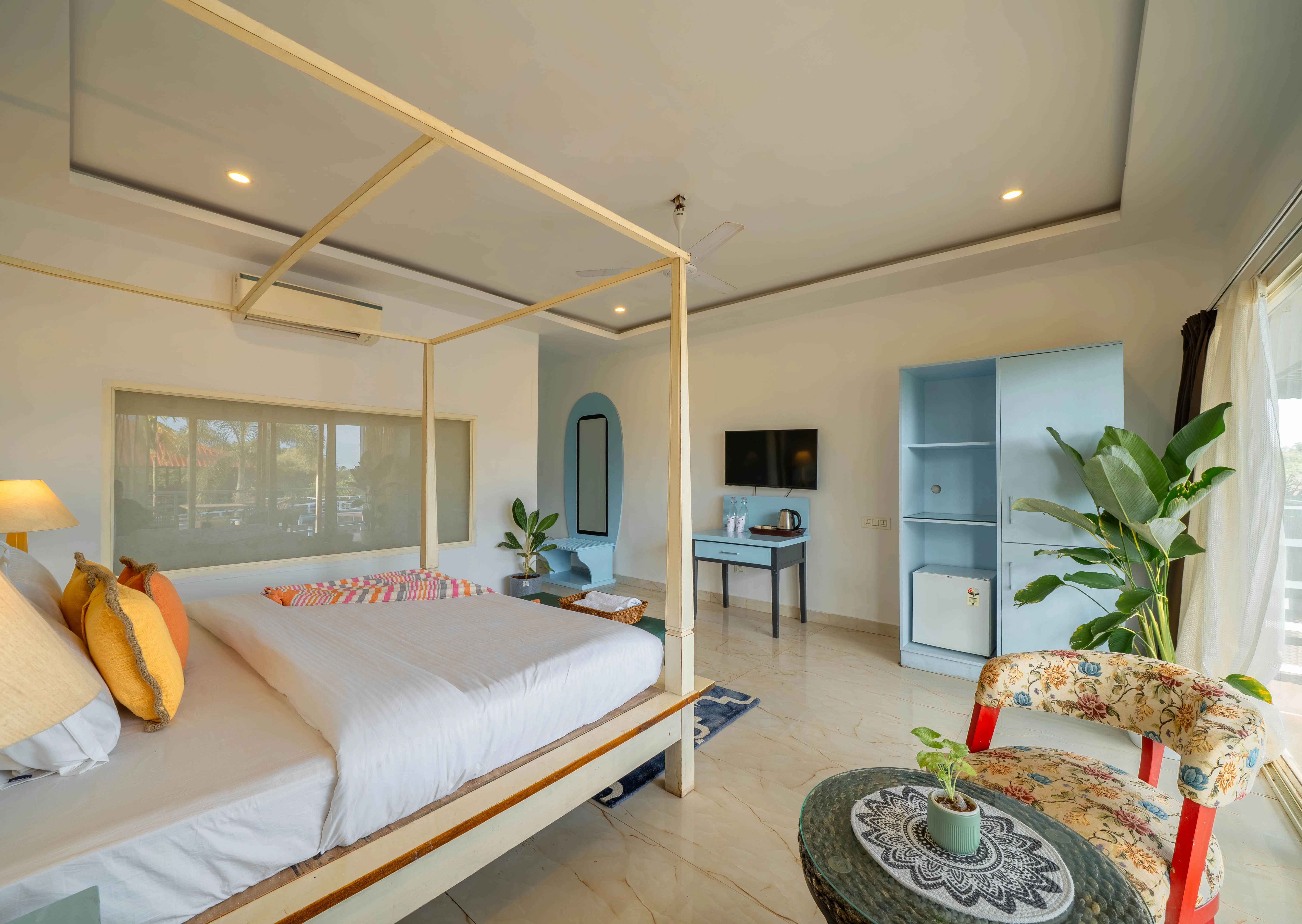 Morjim Beach Resort is a 21 km drive from Thivim Railway Station and 57 km from Goa’s Dabolim International Airport. Choose a shared jeep for an economical coastal journey, book a private taxi for door-to-door comfort or hop on a local bus for a taste of Goan life. Arrive hassle-free with ample on-site parking and uninterrupted electricity throughout your stay.