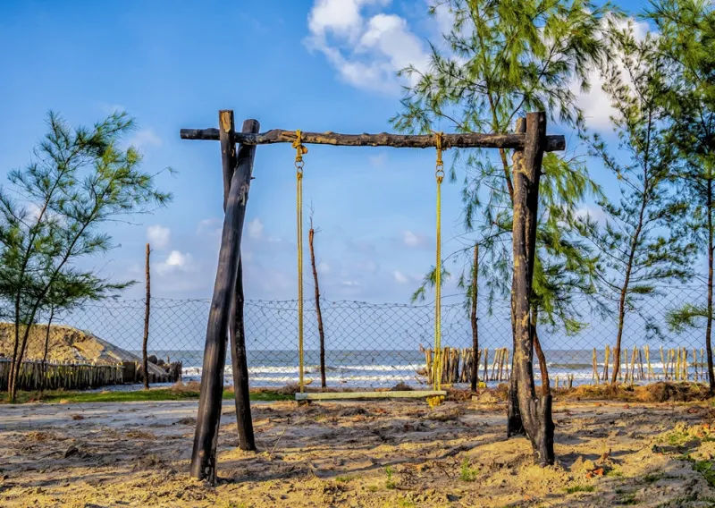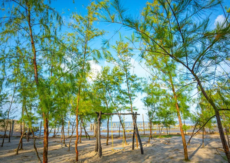 Thinking of staying over? The Bakkhali Camping Ground has comfy Swiss tents with everything you need. But the real magic happens at the eco-park, a cool spot with cartoon characters and dinosaurs that kids and adults will love. Picture swings, sea views, and jhau gach (trees) all around. Plus, the food is delicious, and the hosts are friendly. Don't wait—book your stay now and experience the simple joy of Bakkhali!