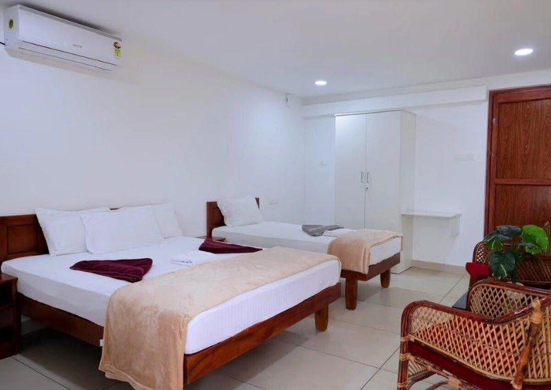 Located on Cliff & Sea Road in Vellar, Kovalam, Kovalam Guest Inn is 10.9 km from Thiruvananthapuram Central Railway Station and 17.1 km from the city’s bus stand and airport. Choose a shared jeep for an authentic local journey, a private taxi for door-to-door comfort, or a direct bus service to arrive effortlessly.