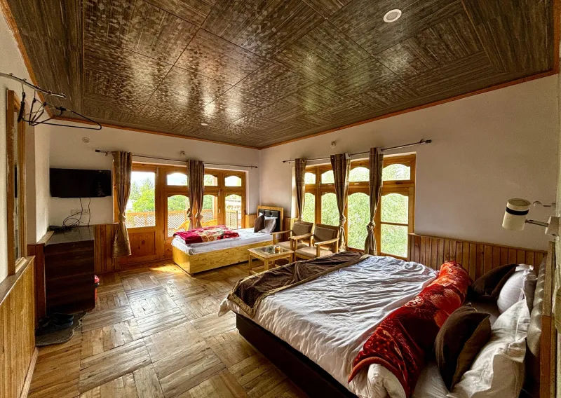 Discover the charm of Diskit Retreat, a serene retreat in the heart of Ladakh’s awe-inspiring landscapes. Here, you'll wake up in tastefully designed rooms bathed in natural light, with balconies presenting panoramic views of majestic mountains and tranquil valleys. Perfect for solo travelers and couples alike, this haven offers modern comforts and free indoor parking.