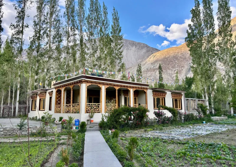 Begin your mornings with the soothing melodies of nature, as sunlight filters through the forest canopy and illuminates the snow-capped peaks. At Sumoor Retreat, every moment immerses you in the valley’s unparalleled beauty. Whether you stroll through the verdant surroundings, soak in the panoramic mountain views, or simply bask in the serenity of your surroundings, this retreat promises a rejuvenating connection to Ladakh's pristine wilderness. As a pet-friendly retreat, Sumoor welcomes your furry companions to share in the adventure. Together, explore the enchanting trails, relax in the calming forest ambiance, or unwind in accommodations thoughtfully designed to provide modern comfort while reflecting the region’s rustic charm. Evenings at Sumoor Retreat are a celebration of nature and community. Gather around a glowing campfire under a starlit sky, where the crisp mountain air mingles with the warmth of camaraderie. Relish authentic Ladakhi cuisine, crafted with fresh, locally sourced ingredients, and savor the heartfelt hospitality that makes every stay unforgettable.