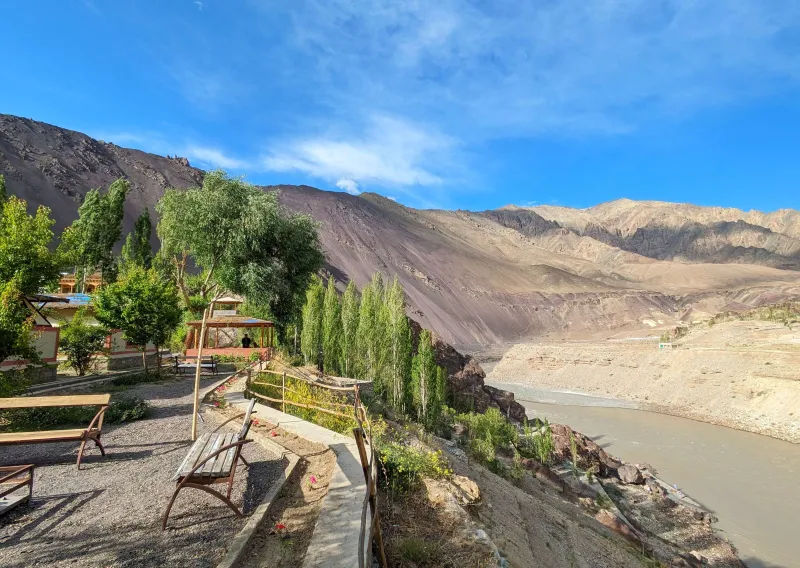 Uleytokpo Resort sits in Uleytokpo, Leh (194101). From Leh Airport (66.3 km), choose a shared jeep, private taxi or local bus for a scenic 2-hour drive along the Indus. If you arrive by train at Jammu Tawi Railway Station (595 km), board a state-run bus or private taxi through Kargil to Leh, then arrange onward transport—jeep, taxi or bus—to the resort.