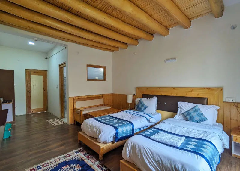 Lamayuru Retreat is located in Hotel moonland, Lamayuru, Ladakh 194106. From Leh Airport (112 km), enjoy a scenic drive via shared jeep, private taxi or bus along the Leh–Kargil highway. If you arrive by train at Jammu Tawi Railway Station (550 km), continue by shared jeep or private taxi through Srinagar and Kargil to reach Lamayuru. Well-maintained roads and regular public transport mean you can relax and take in the mountain vistas en route.