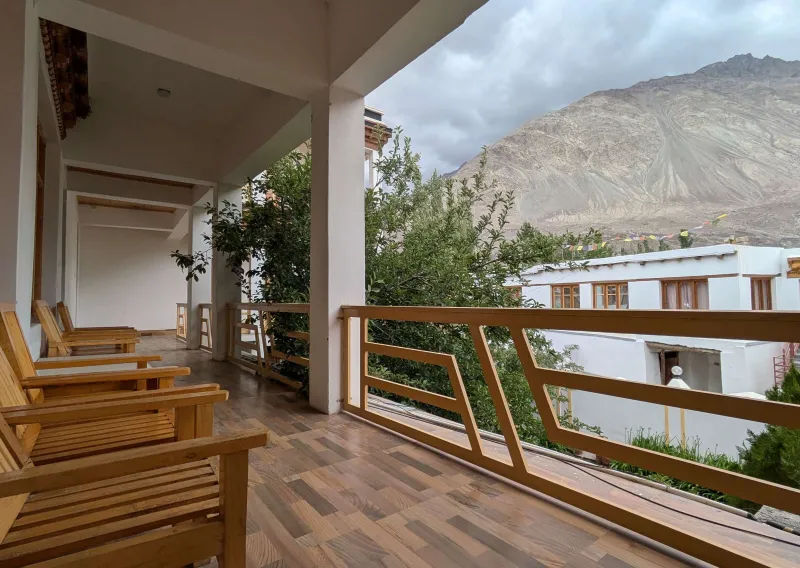Diskit Retreat is a scenic 115 km drive from Kushok Bakula Rimpochee Airport (Leh) or 753 km from Jammu Tawi Railway Station. Travelers can choose a shared jeep, private taxi, or bus for a memorable mountain-road journey. Upon arrival at Chukpo Residence, ample parking and a warm welcome await.