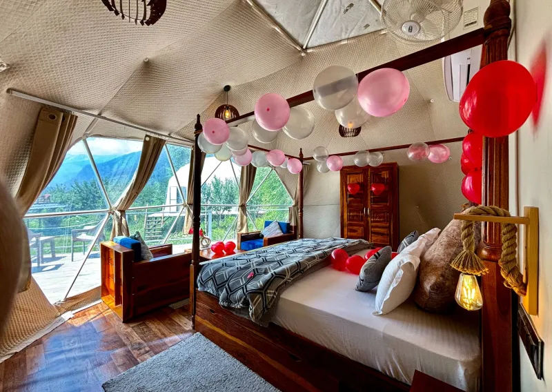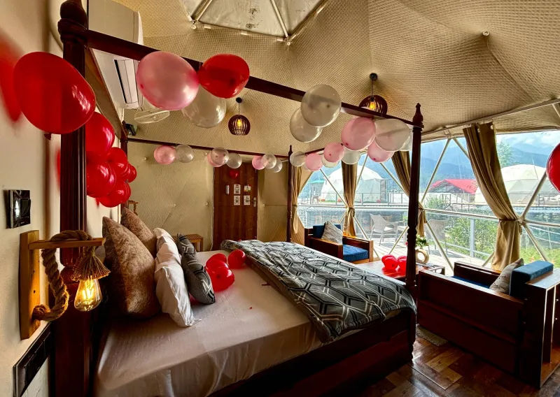 To reach the glamping site, you can take a flight to Kullu-Manali Airport (Bhuntar) and then travel by road, or take a bus/train to Delhi and then a bus or taxi to Manali. Alternatively, you can drive from Delhi, Chandigarh, or other nearby cities, with a scenic journey via the national highways.