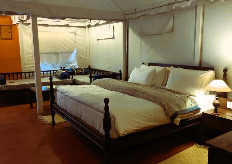 Kanatal Glamping Stay is nestled just 1 km off Chamba–Mussoorie Road in the tranquil Kaudia Range of Uttarakhand. From Dehradun Railway Station (72.7 km) and Jolly Grant Airport (79.6 km), opt for a shared jeep or private taxi for a panoramic mountain drive, or take a bus to Chamba followed by a short local ride. Pre-book transfers with us for a smooth, hassle-free journey into the hills.